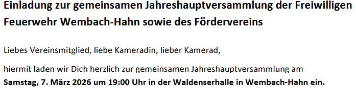 Einladung zur Gemeinsame Jahreshauptversammlung